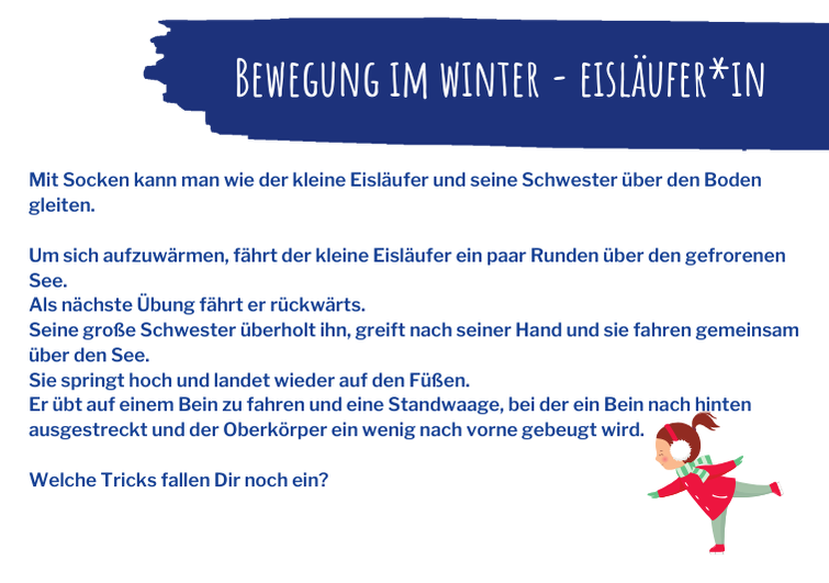 Auf Socken kann jeder über den Boden gleiten wie ein*e Eisläufer*in. Dabei geht es nicht, um möglichst weites rutschen, sondern um eine Art des Fortbewegens. Hochgeladen von: Chiara